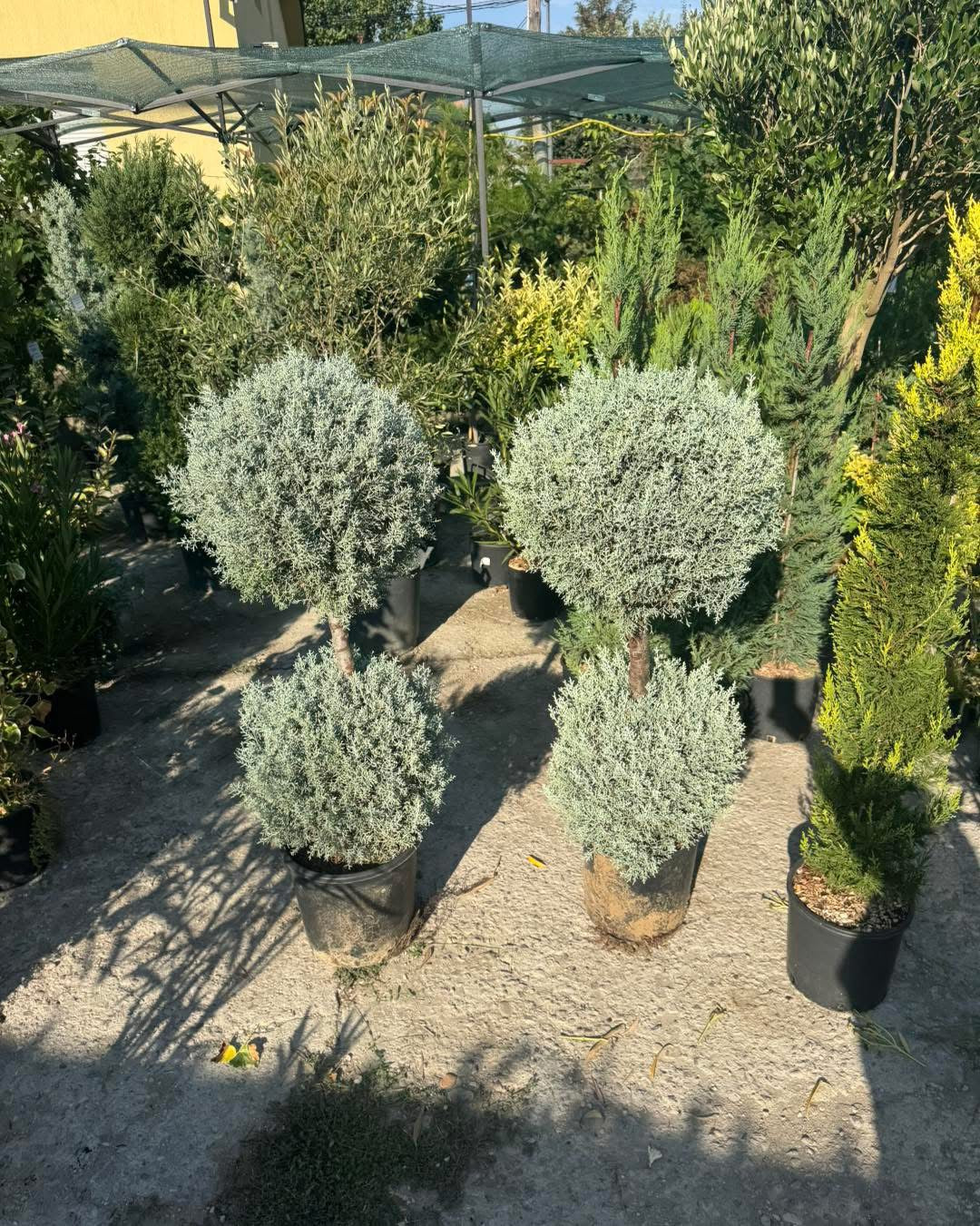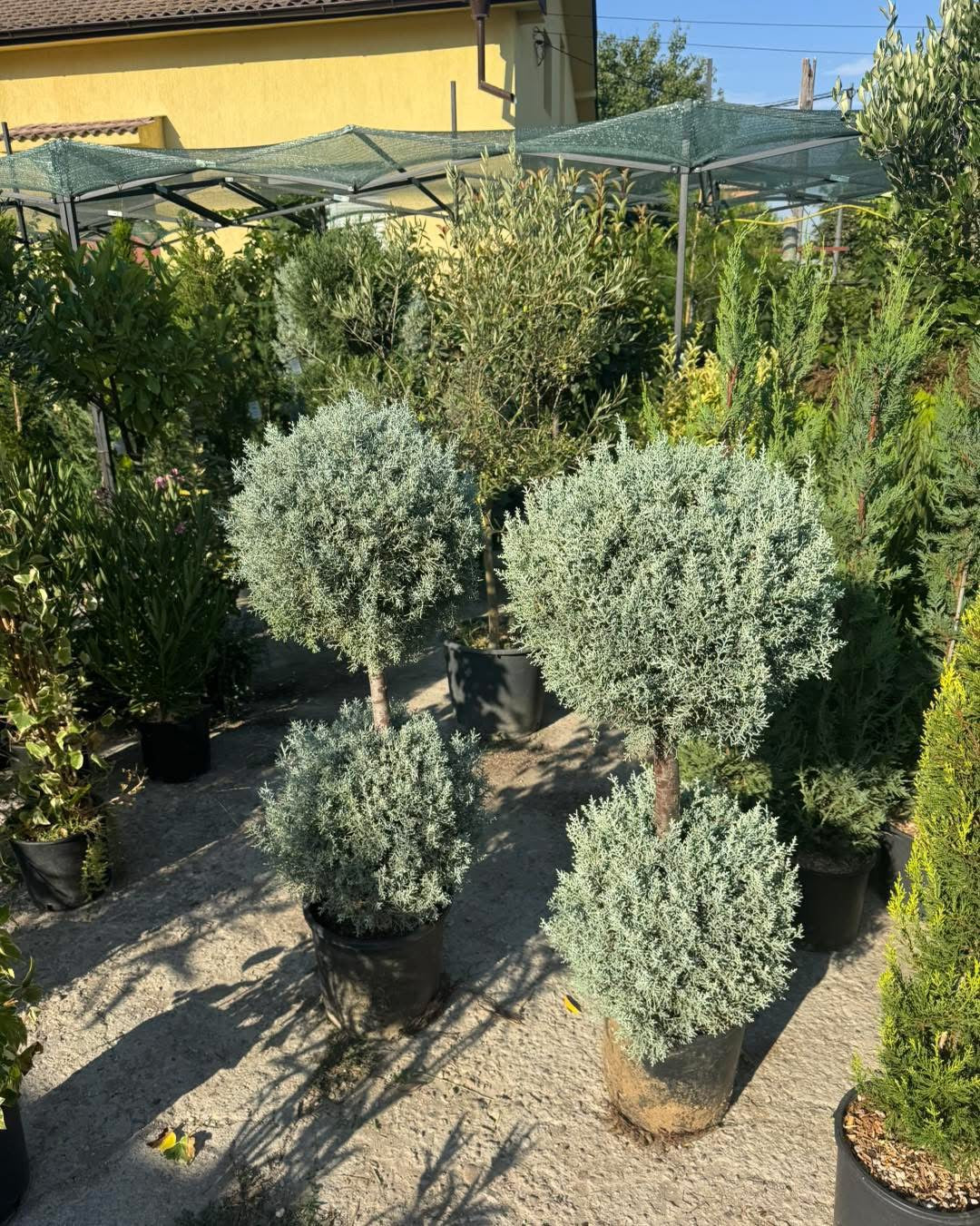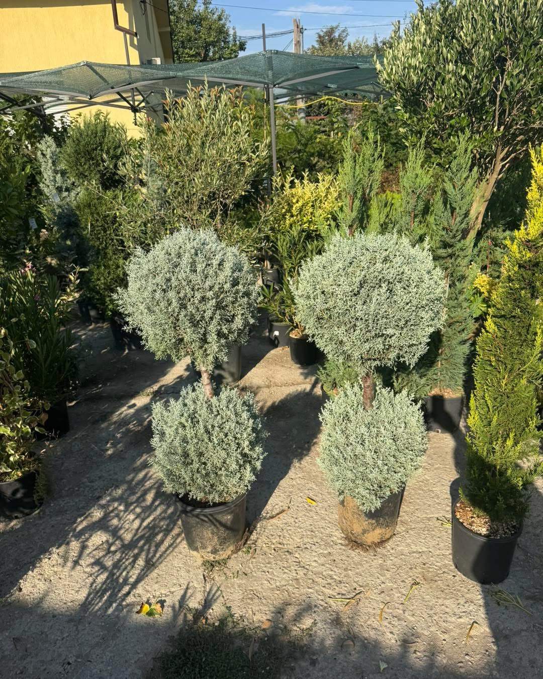 Предлагам красив аризонски кипарис, оформен професионално на две топки с телена рамка.